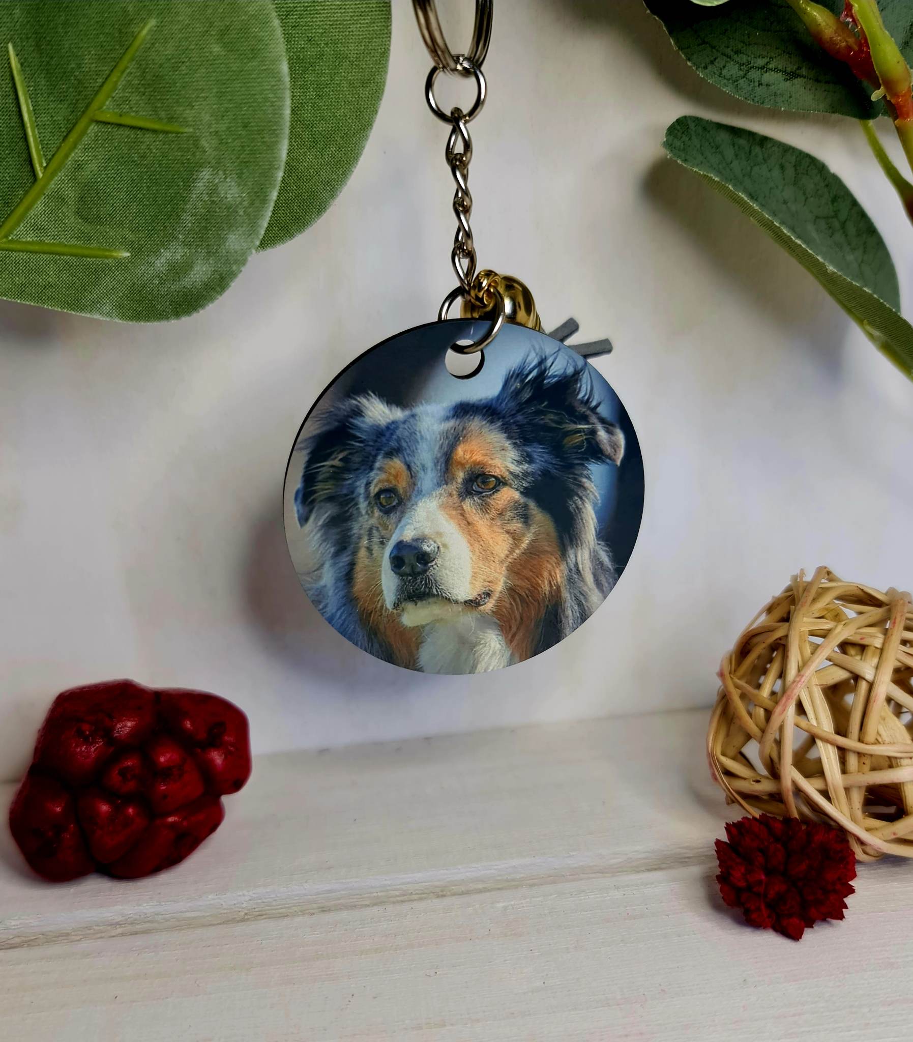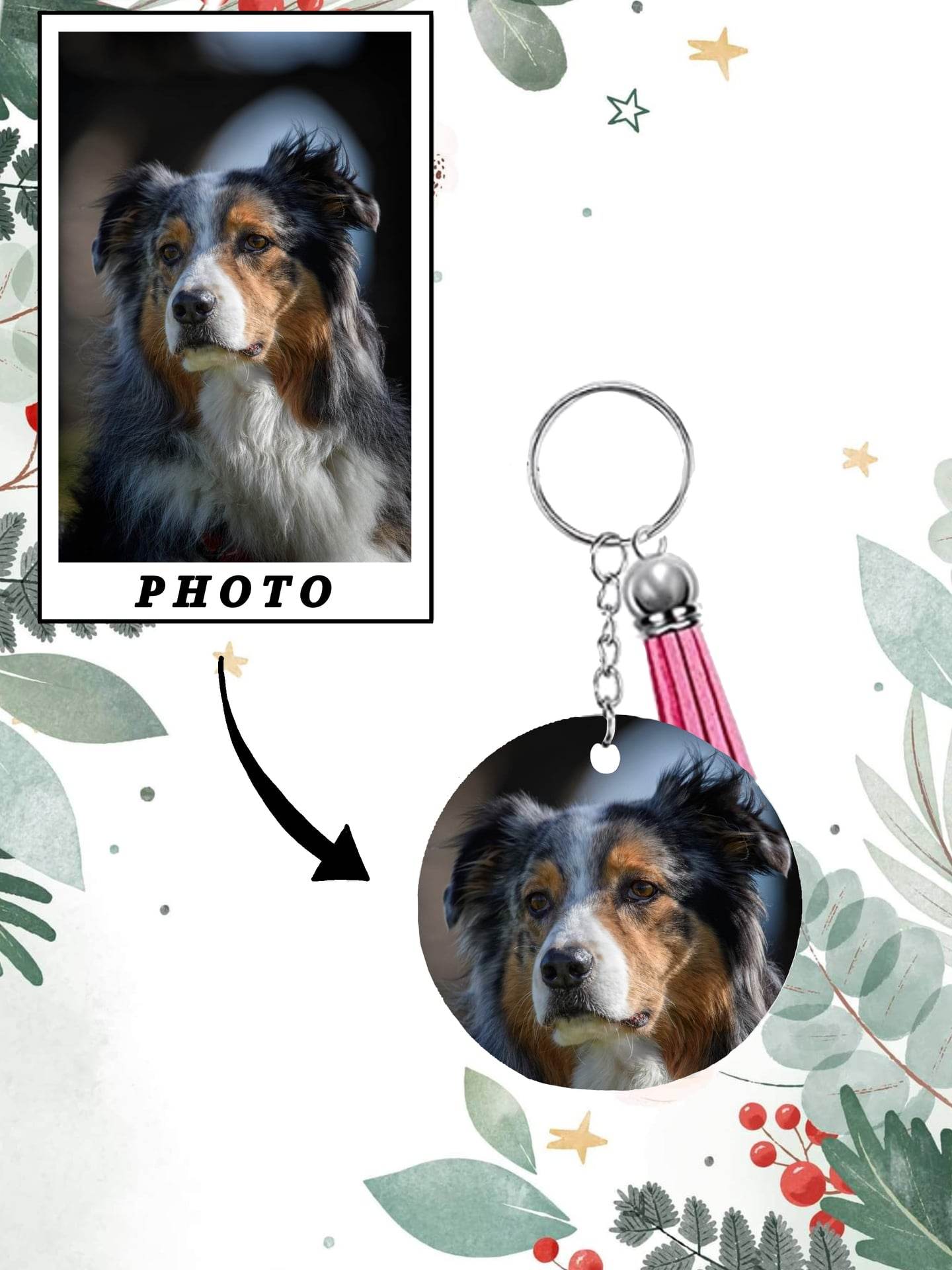 Porte-clés personnalisable sur les 2 faces. Possibilité de mettre 2 photos/images différentes et de choisir une pampille colorée à accrocher avec.